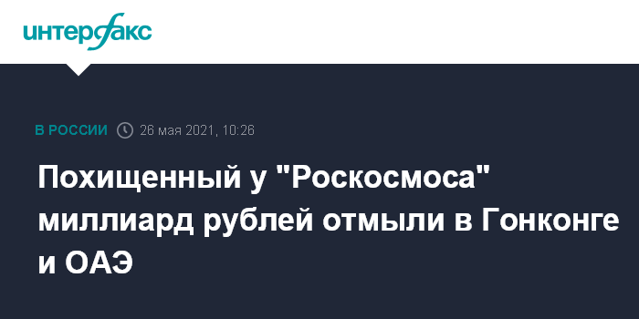 Похищенный у "Роскосмоса" миллиард рублей отмыли в Гонконге и ОАЭ
