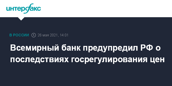 Москва. 26 мая. INTERFAX.RU - Административное вмешательство в ценообразование на отдельные группы товаров, к которому российские власти прибегли в конце прошлого года на фоне ускорения темпов инфляции, хоть и дает властям политические очки, но вредно для экономики и дорого обходится бюджету, считают во Всемирном банке.