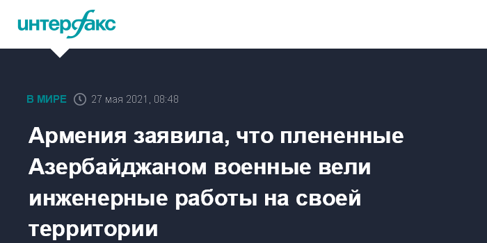 Москва. 27 мая. INTERFAX.RU - Военнослужащие ВС Армении взяты в плен азербайджанской стороной во время проведения инженерных работ на своей территории, сообщает Минобороны Армении.