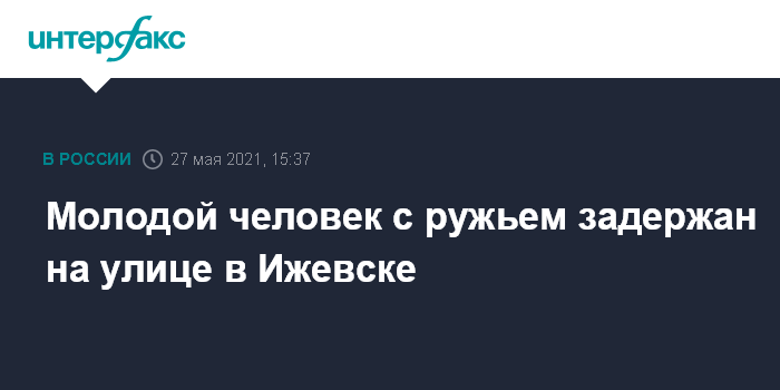 Москва. 27 мая. INTERFAX.RU - Сотрудники правоохранительных органов в четверг после звонков от граждан задержали молодого человека, шедшего с ружьем по улицам Ижевска, сообщил "Интерфаксу" информированный источник.