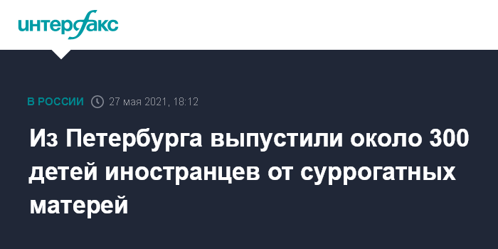 Москва. 27 мая. INTERFAX.RU - В конце 2020 года около 300 детей, рожденных в Петербурге суррогатными матерями, были переданы биологическим родителям-иностранцам, сообщила детский омбудсмен региона Анна Митянина. Она отметила роль губернатора Александра Беглова в решении этой проблемы.