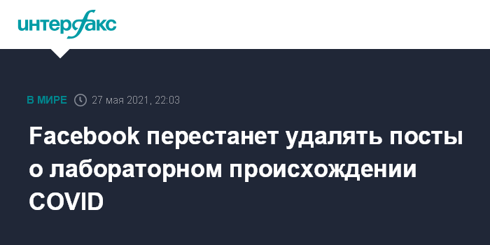 Facebook в феврале объявила, что запрещает писать посты, в которых говорится о том, что коронавирус был якобы создан в китайской лаборатории, а также о неэффективности или ядовитости вакцин. Но после того, как президент США Джо Байден попросил разведку "удвоить" усилия по поиску источника COVID-19, и в числе прочего рассмотреть "вопросы по Китаю", компания решила пересмотреть свою политику.