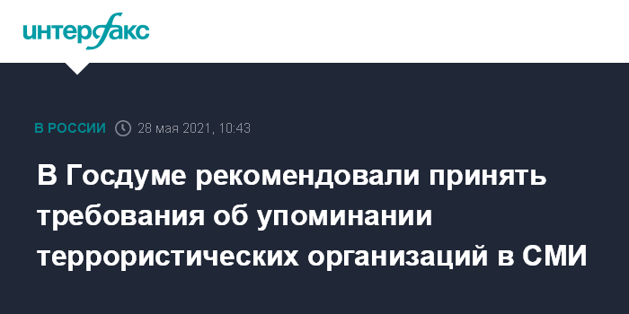 В Госдуме рекомендовали принять требования об упоминании террористических организаций в СМИ
