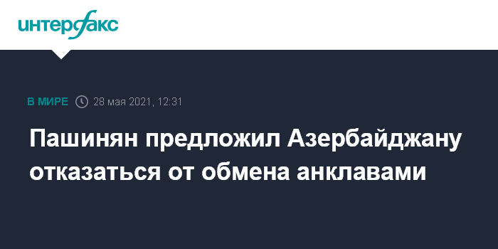 20 мая Пашинян допустил обсуждение с Азербайджаном вопроса обмена анклавными территориями.