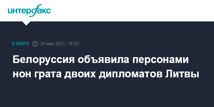 Москва. 28 мая. INTERFAX.RU - Белоруссия объявила персонами нон грата двоих литовских дипломатов "за деятельность, несовместимую со статусом дипломатического сотрудника", сообщил пресс-секретарь белорусского МИД Анатолий Глаз.
