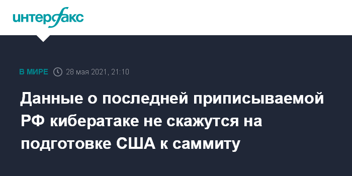 Данные о последней приписываемой РФ кибератаке не скажутся на подготовке США к саммиту