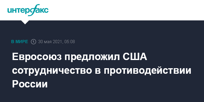 Москва. 30 мая. INTERFAX.RU - Предложение объединить усилия в противодействии России содержится в проекте совместного заявления саммита Евросоюз-США, подготовленного европейской стороной и направленного на согласование в Вашингтон, сообщило агентство Bloomberg.