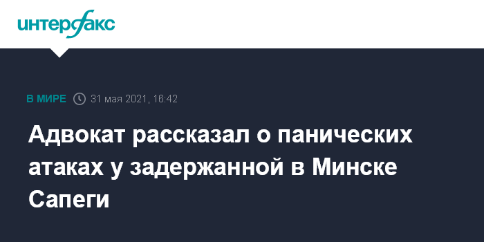 Москва. 31 мая. INTERFAX.RU - Адвокат задержанной гражданки России Софьи Сапеги Александр Филанович рассказал "Интерфакс-Запад" в понедельник о состоянии подзащитной.