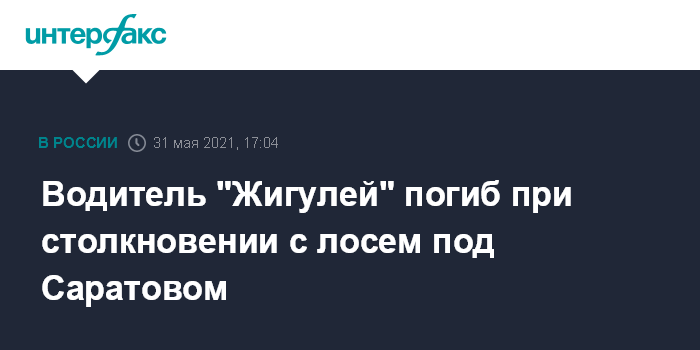 Москва. 31 мая. INTERFAX.RU - Легковой автомобиль столкнулся с лосем на федеральной трассе в Саратовской области, водитель и животное погибли. Об этом сообщает пресс-служба УГИБДД по региону.
