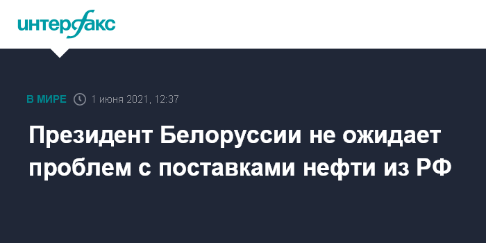 Москва. 1 июня. INTERFAX.RU - По поставкам российской нефти в Белоруссию никаких проблем не будет, заявил президент республики Александр Лукашенко.