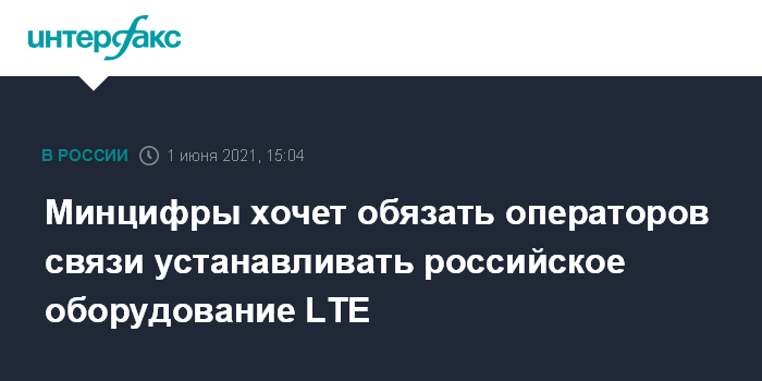Москва. 1 июня. INTERFAX.RU - Минцифры сообщило, что обсуждает с операторами связи возможность ввести требование об использовании российского оборудования стандарта LTE и LTE-Advanced при выделении им частот или их продлении.