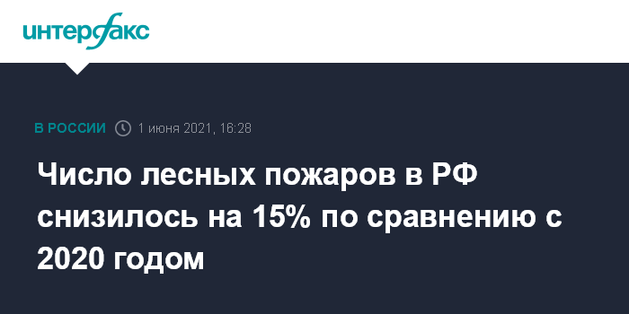 Москва. 1 июня. INTERFAX.RU - Общее количество лесных пожаров в России сократилось на 15% в этом году по сравнению с 2020 годом, сообщает министерство природы.