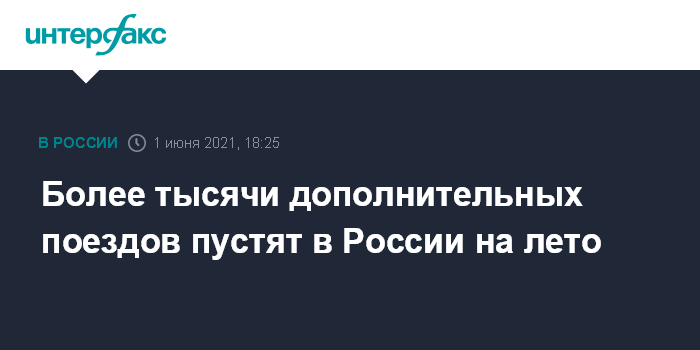 Москва. 1 июня. INTERFAX.RU - ОАО "Российские железные дороги" в летний период назначает свыше тысячи дополнительных поездов дальнего следования, сообщила компания в телеграм-канале.