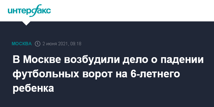 В Москве возбудили дело о падении футбольных ворот на 6-летнего ребенка