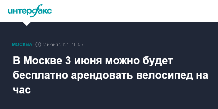 Москва. 2 июня. INTERFAX.RU - В Москве 3 июня можно будет бесплатно ездить 60 минут на арендованном велосипеде, сообщил через пресс-службу Департамента транспорта заммэра Максим Ликсутов.