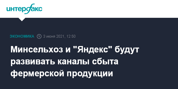 Москва. 3 июня. INTERFAX.RU - Минсельхоз и "Яндекс" намерены развивать современные каналы сбыта фермерской продукции.