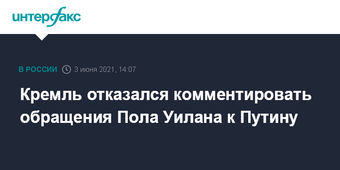 Москва. 3 июня. INTERFAX.RU - Пресс-секретарь президента РФ Дмитрий Песков не стал комментировать обращения осужденного за шпионаж гражданина США Пола Уилана к Владимиру Путину с просьбой о милосердии, указав, что существует процедура помилования.