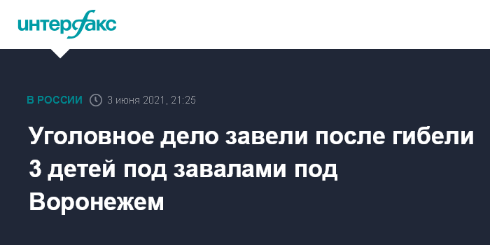 Москва. 3 июня. INTERFAX.RU - Следственные органы возбудили уголовное дело после гибели троих детей под завалами недостроенного дачного дома в Воронежской области, сообщает СК РФ.