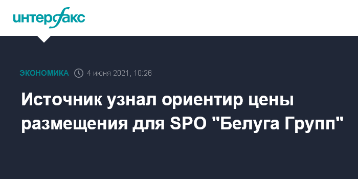 Источник узнал ориентир цены размещения для SPO "Белуга Групп"