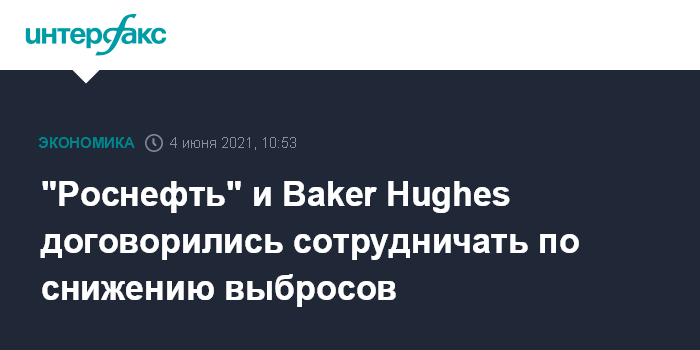 Москва. 4 июня. INTERFAX.RU - "Роснефть" и нефтесервисная Baker Hughes на Петербургском международном экономическом форуме подписали соглашение о сотрудничестве в области углеродного менеджмента, сообщила российская нефтяная компания.