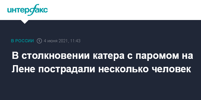 Москва. 4 июня. INTERFAX.RU - На Лене, неподалеку от Якутска катер "Волжанка-87" с пассажирами столкнулся с паромом, несколько человек получили травмы, рассказал "Интерфаксу" информированный источник.
