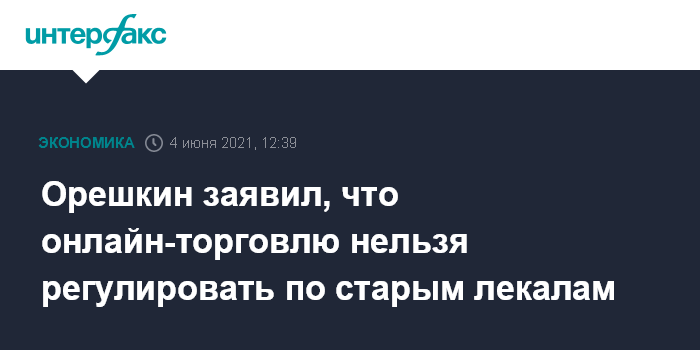 Москва. 4 июня. INTERFAX.RU - Регулирование онлайн-торговли должно строиться по новым принципам - в рамках регулирования экосистем, считает помощник президента РФ Максим Орешкин.
