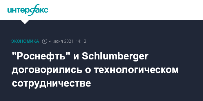 Москва. 4 июня. INTERFAX.RU - "Роснефть" и Schlumberger на ПМЭФ соглашение о технологическом сотрудничестве в реализации в России совместных инновационных проектов, связанных с наукой, проектированием и эксплуатацией нефтяных и газовых месторождений.