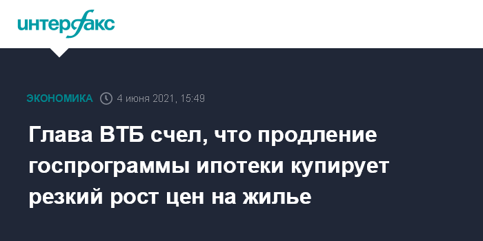 Глава ВТБ счел, что продление госпрограммы ипотеки купирует резкий рост цен на жилье