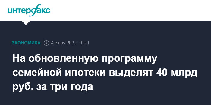 На обновленную программу семейной ипотеки выделят 40 млрд руб. за три года