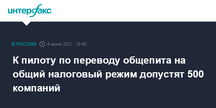 Москва. 4 июня. INTERFAX.RU - Участвовать в эксперименте по более плавному переводу предприятий общественного питания с упрощенного налогового режима на общий смогут 500 компаний, сообщил журналистам министр финансов Антон Силуанов.