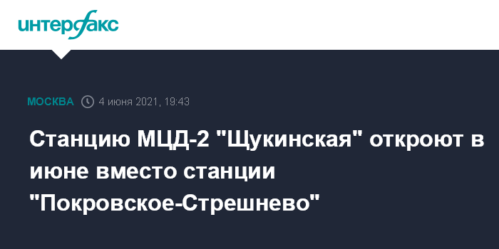 "В июне на D2 заработает новая станция Щукинская. Внимание: станция Покровское-Стрешнево D2 будет закрыта", - говорится в сообщении в телеграм-канале ведомства.