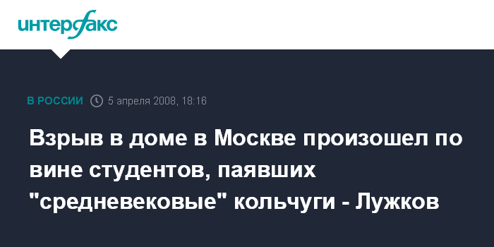 Взрыв в доме в Москве произошел по вине студентов, паявших "средневековые" кольчуги - Лужков