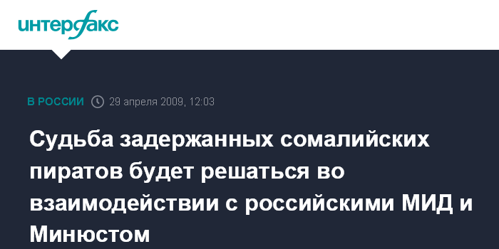 "Дальнейшая судьба пиратов будет определяться во взаимодействии с российскими министерством иностранных дел и Минюстом", - сказал собеседник агентства.
