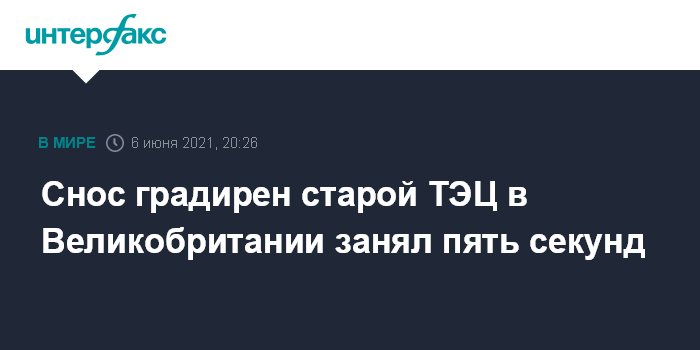 Москва. 6 июня. INTERFAX.RU - Градирни исторической ТЭЦ Рагли в британском Стаффордшире снесли контролируемым взрывом. Как утверждает Daily Mail, процесс занял лишь пять секунд.