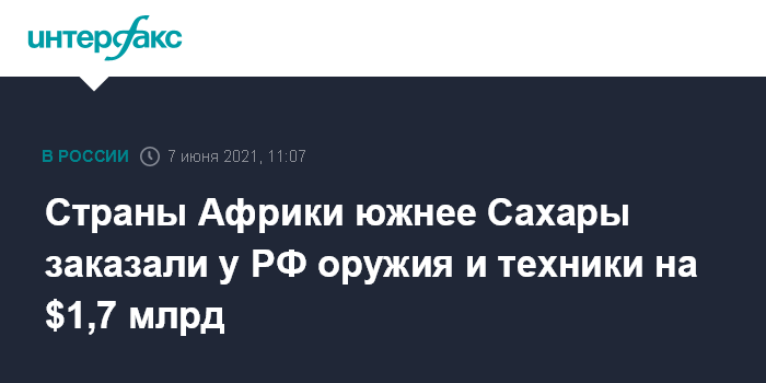 Москва. 7 июня. INTERFAX.RU - Африканские страны, расположенные южнее Сахары, подписали с Россией контракты на покупку оружия и техники на сумму более $1,7 млрд, сообщили в пресс-службе "Рособоронэкспорта".