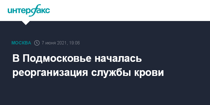Москва. 7 июня. INTERFAX.RU - Реорганизация службы крови началась в Московской области. Соответствующий документ опубликован на сайте министерства здравоохранения Московской области, сообщает пресс-служба ведомства.