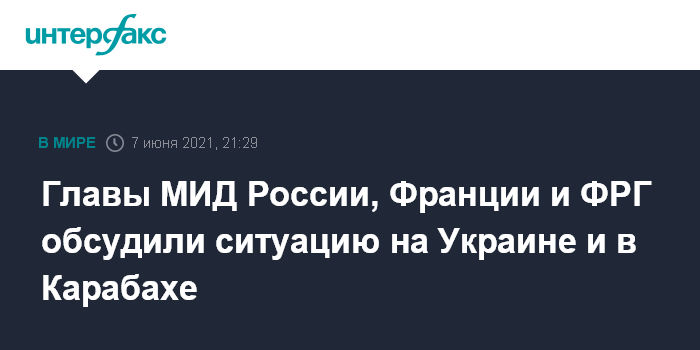 Москва. 7 июня. INTERFAX.RU - Глава МИД Франции Жан-Ив Ле Дриан и министр иностранных дел ФРГ Хайко Маас в телефонном разговоре с главой МИД РФ Сергеем Лавровым в понедельник обсудили ситуацию на Украине, Нагорный Карабах и обстановку на армяно-азербайджанской границе.