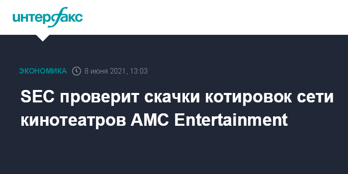 Москва. 8 июня. INTERFAX.RU -Комиссия по биржам и ценным бумагам (SEC) США начала проверять волатильность котировок сети кинотеатров AMC Entertainment Holdings Inc. и других компаний, популярных среди розничных инвесторов, сообщает Bloomberg со ссылкой на заявление регулятора.