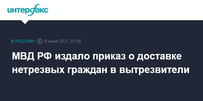 Москва. 9 июня. INTERFAX.RU - Утвержден приказ МВД РФ о доставке нетрезвых граждан в вытрезвители при участии полиции, сообщает в среду "Российская газета" (РГ).