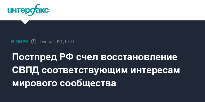 Постпред РФ счел восстановление СВПД соответствующим интересам мирового сообщества