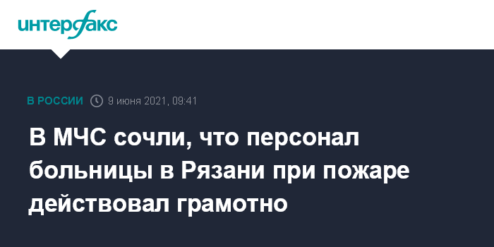 Москва. 9 июня. INTERFAX.RU - Персонал Областной клинической больницы (ОКБ) имени Семашко в Рязани, по предварительной оценке, грамотно действовал при пожаре в реанимационном отделении, сообщили "Интерфаксу" в региональном ГУ МЧС.