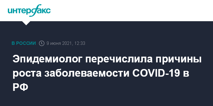 Москва. 9 июня. INTERFAX.RU - Рост заболеваемости коронавирусом в России связан с игнорированием гражданами мер предосторожности, также оказывают свое влияние низкие темпы вакцинации и снижение иммунитета у переболевших COVID-19, заявила заместитель директора по клинико-аналитической работе ЦНИИ эпидемиологии Роспотребнадзора Наталья Пшеничная.