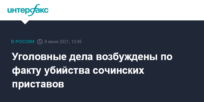 Москва. 9 июня. INTERFAX.RU - Убийство двух сочинских приставов будут расследовать в рамках уголовных дел.