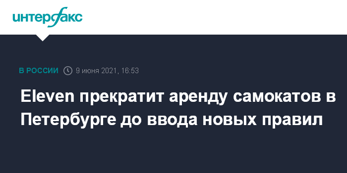Москва. 9 июня. INTERFAX.RU - Белорусский кикшеринговый сервис Eleven сообщил, что не будет сдавать электросамокаты в аренду в Петербурге до тех пор, пока там не введут новые правила движения.