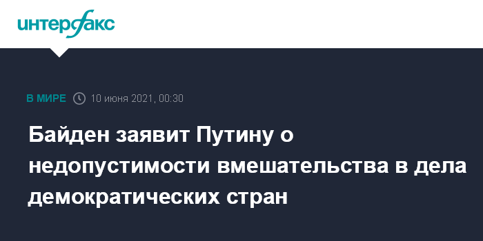 Байден заявит Путину о недопустимости вмешательства в дела демократических стран