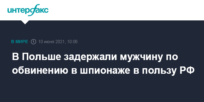 "В Варшаве 31 мая 2021 года сотрудники Агентства внутренней безопасности задержали Януша Н. Прокурор выдвинул в его отношении обвинение в шпионаже в пользу Российской Федерации. Суд принял во внимание ходатайство прокурора и поместил подозреваемого в предварительное заключение сроком на три месяца", - говорится в сообщении надзорного ведомства.