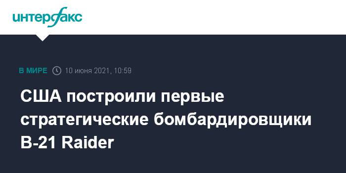 Москва. 10 июня. INTERFAX.RU - Соединенные Штаты построили первые два новых стратегических бомбардировщика B-21 Raider. Об этом сообщила на слушаниях в Конгрессе исполняющий обязанности помощника министра ВВС США по закупкам, технологиям и логистике Дарлин Костелло.