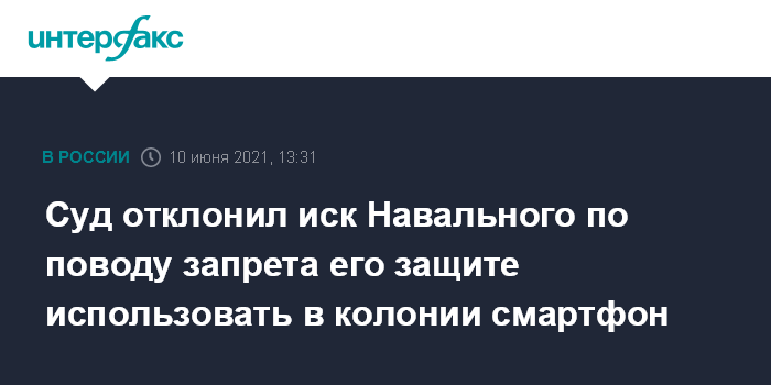 Москва. 10 июня. INTERFAX.RU - Октябрьский суд Владимира отклонил административный иск Алексея Навального, в котором он просил признать незаконными действия колонии (ИК-3) во Владимирской области, запретившей его адвокатам использовать на свиданиях с ним ноутбуки и смартфон.