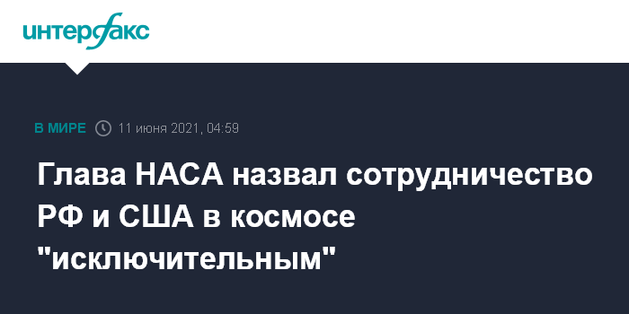 Москва. 11 июня. INTERFAX.RU - Глава американского аэрокосмического агентства НАСА Билл Нельсон назвал сотрудничество России и США в космосе "исключительным", об этом он рассказал в интервью изданию Politico.