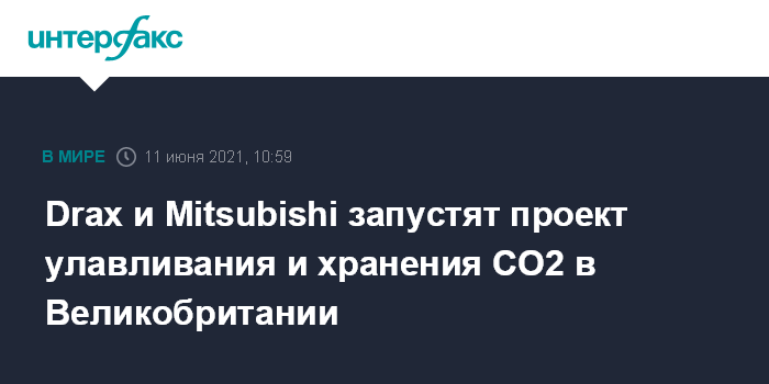Москва. 11 июня. INTERFAX.RU - Британская генерирующая компания Drax Group и японская инжиниринговая Mitsubishi Heavy Industries Engineering заключили соглашение о реализации проекта улавливания и хранения углекислого газа.